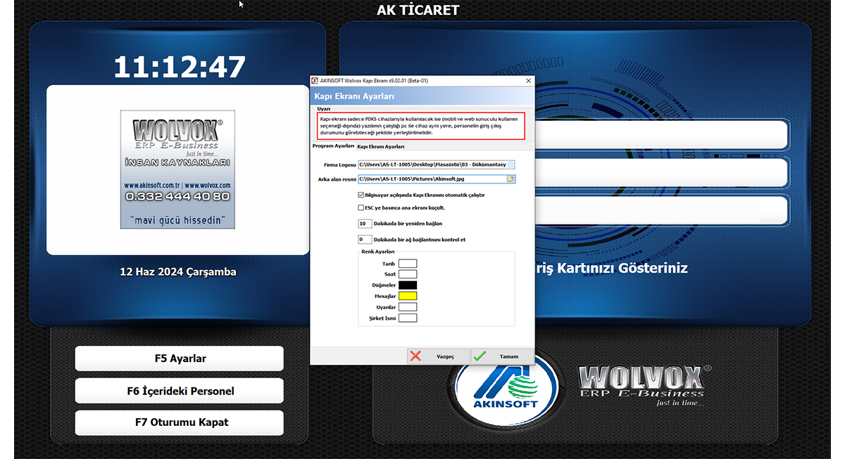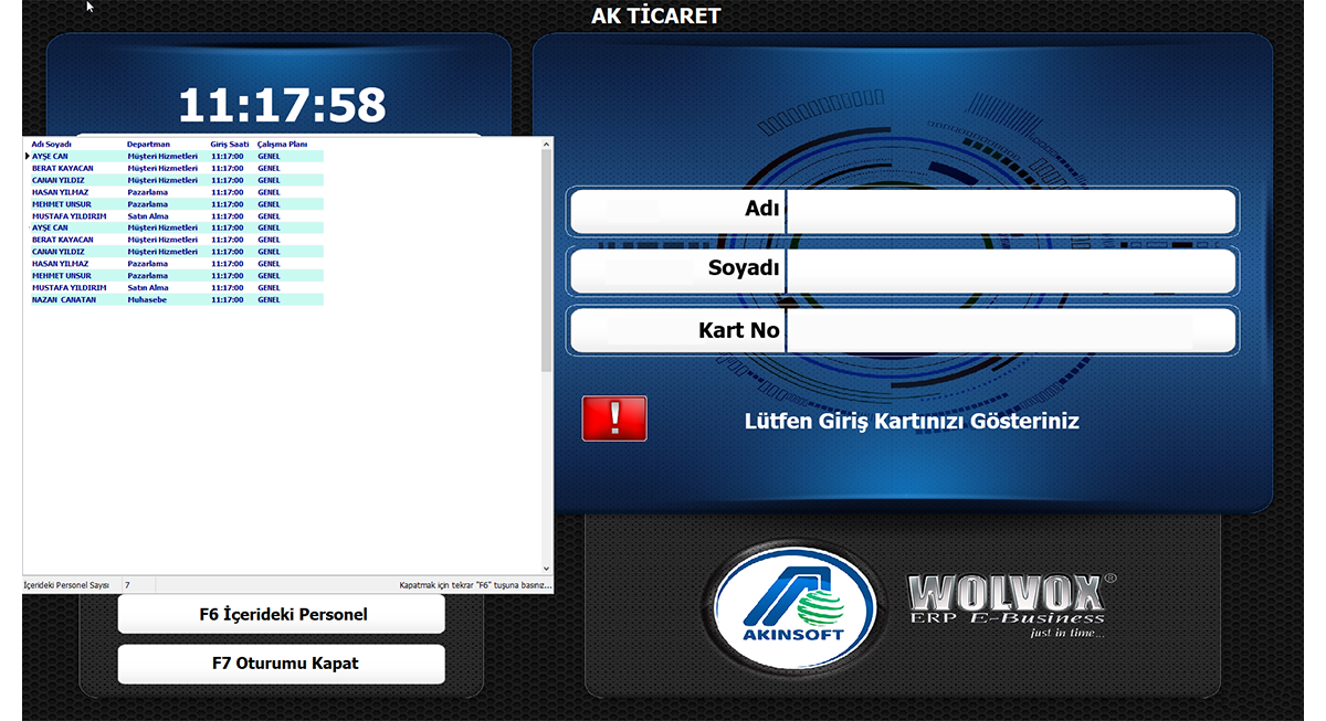 - Personellerin Wolvox İnsan Kaynakları programı ile etkileşimli olarak giriş veya çıkış yapabilmesini sağlar.