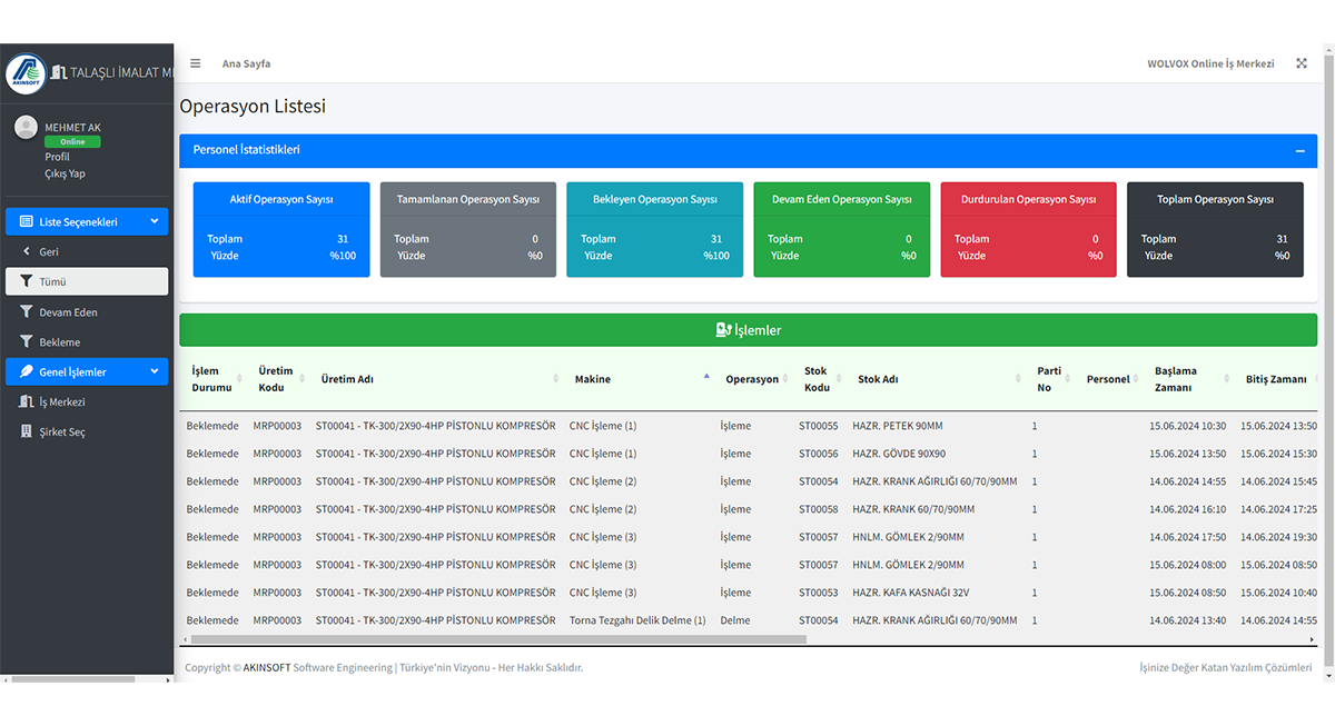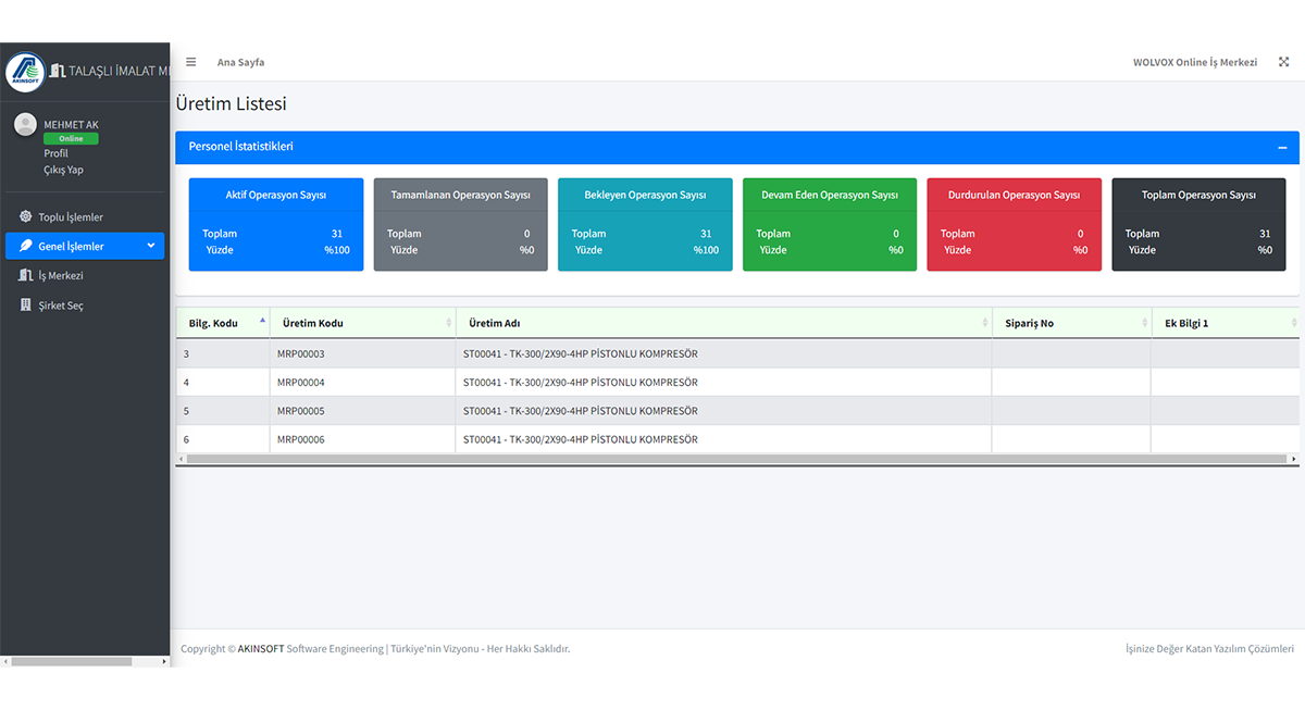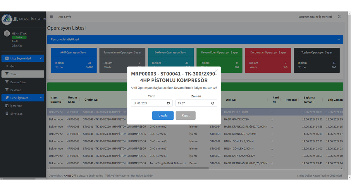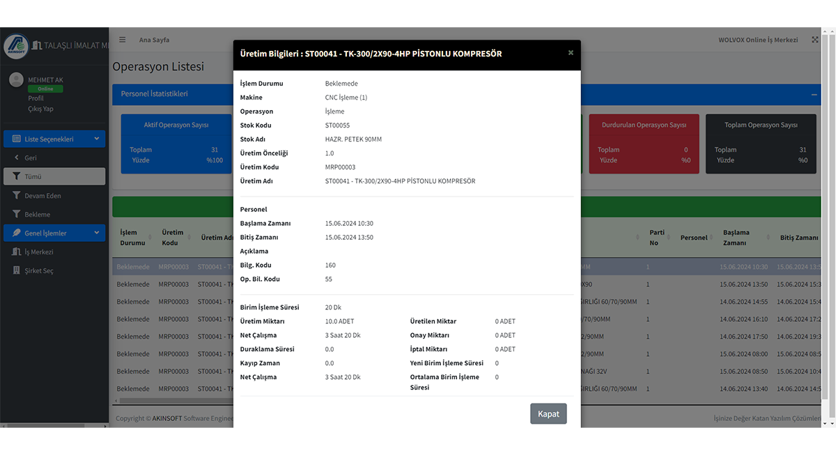 - Personel ve Makine atama ile anlık iş emirlerinde değişiklik sağlayabilirsiniz.
