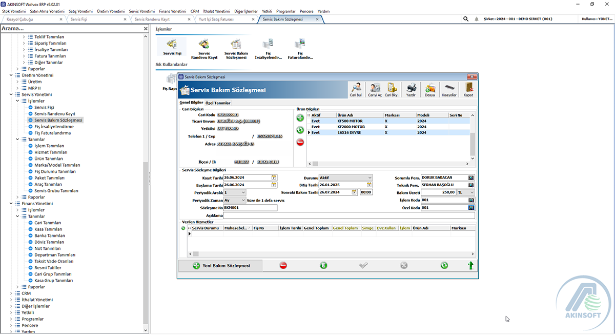 AKINSOFT WOLVOX Servis Programı, WOLVOX ERP’nin bir parçasıdır ve tam entegrasyonludur.