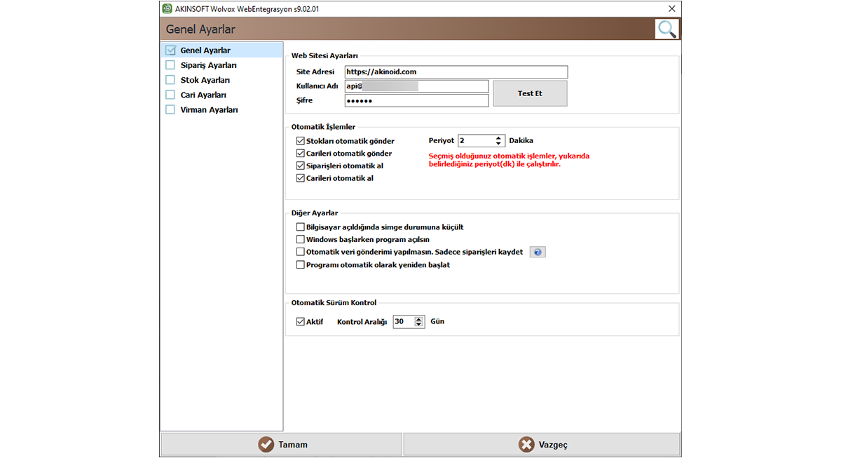AKINSOFT E-Ticaret sunucusu ile otomatik haberleşerek siparişleri Wolvox ERP üzerine aktarır.