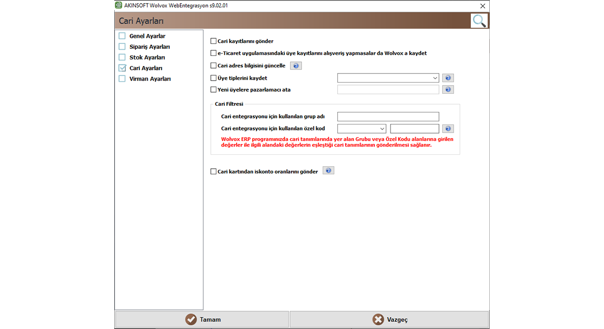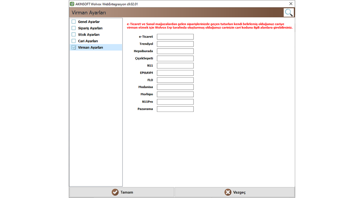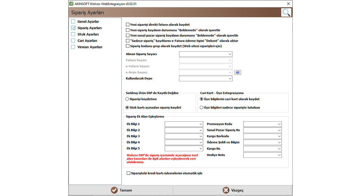 - Sanal mağaza ve Akınsoft e-Ticaret siparişlerinizi otomatik Wolvox 9 ERP programına entegrasyonu.