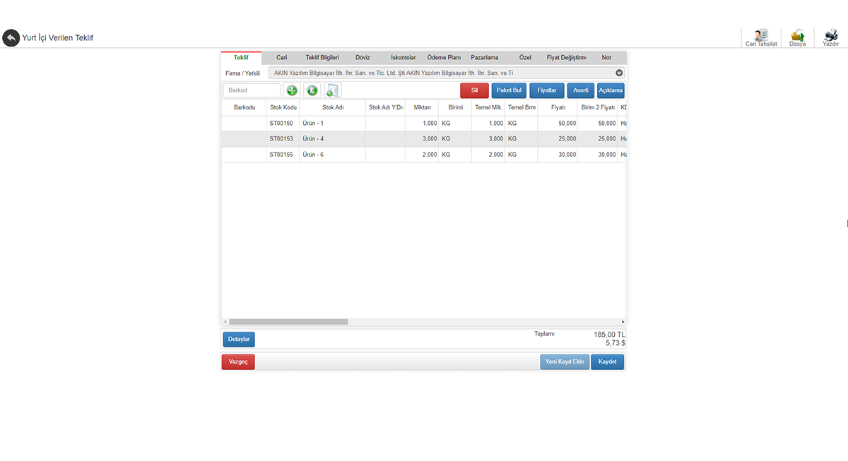 - E-Teklif modülü yardımı ile tedarikçilerinizden hızlı bir şekilde teklif toplayabilirsiniz.