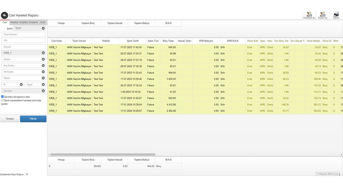 AKINSOFT Wolvox’un içerdiği Cari, Kasa, Stok, Fatura, Sipariş, Servis, İrsaliye ve Döviz modüllerinin temel fonksiyonları ile raporlarını, ayrıca Restoran modülü raporlarını ve CRM modülündeki Aktivite kayıtları ile aktivite raporlarını web ve mobil üzerinden kullanabilmeyi sağlar.