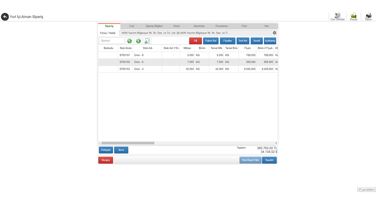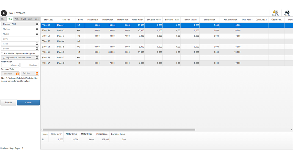 - Mevcut modüller ERP programındaki modüllerdeki özelliklerin büyük çoğunluğunu destekler.